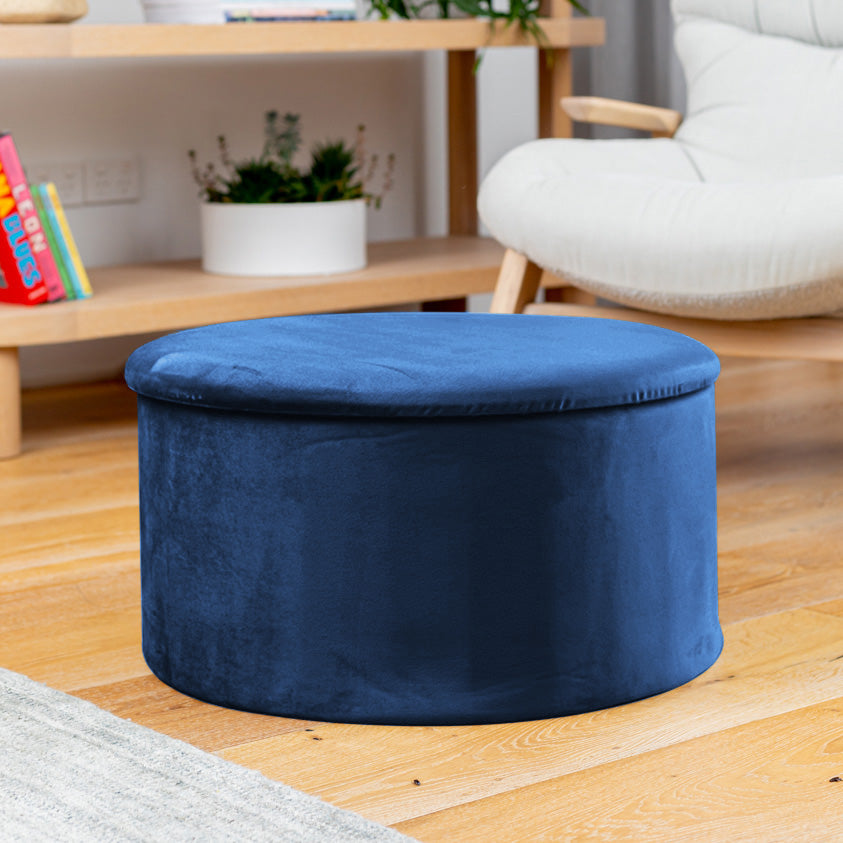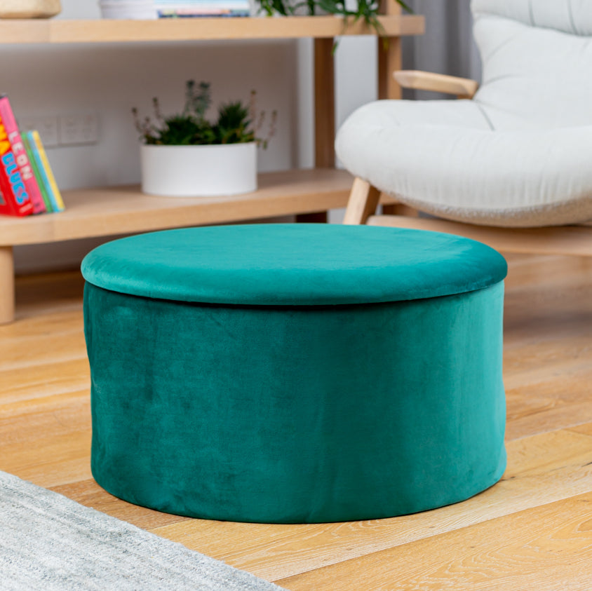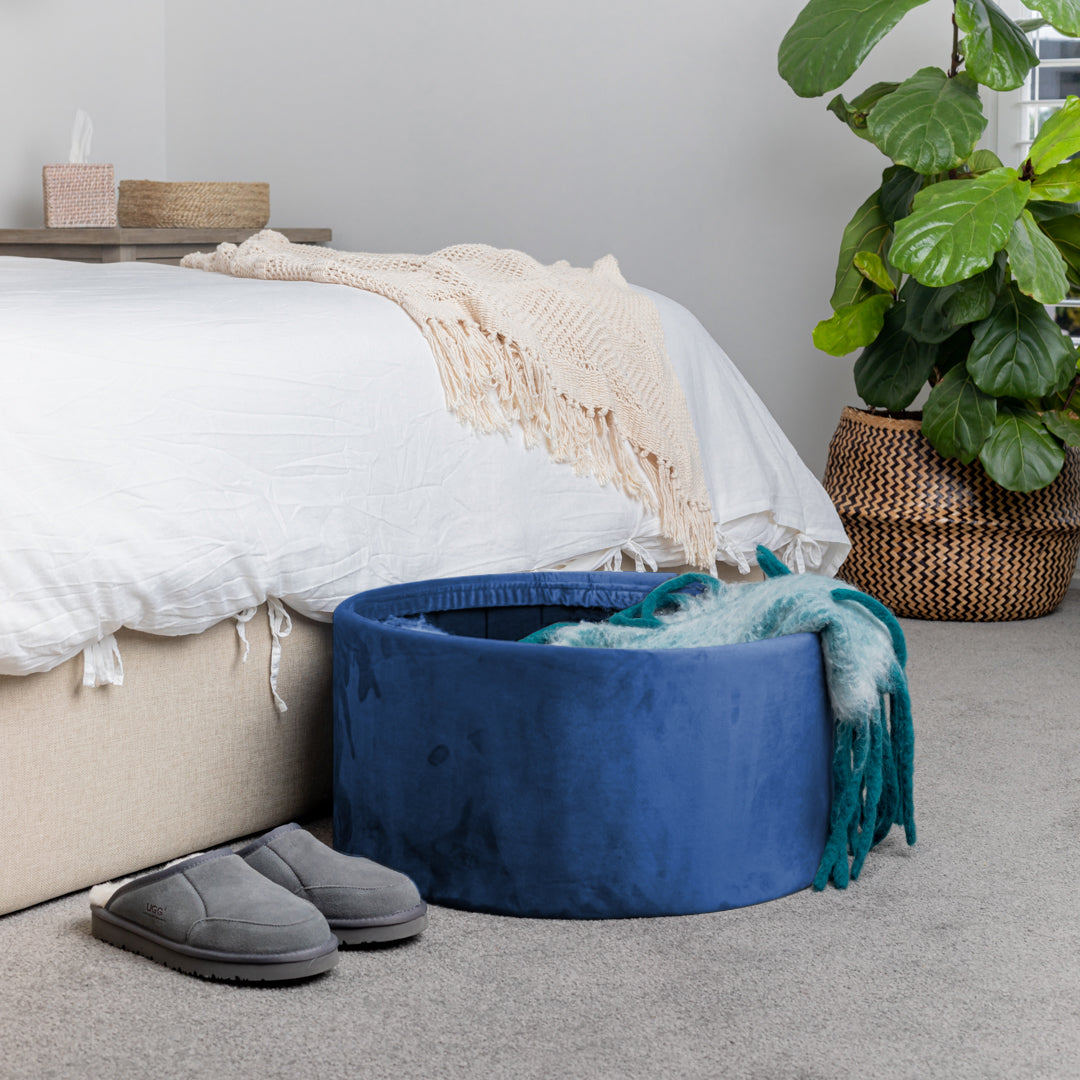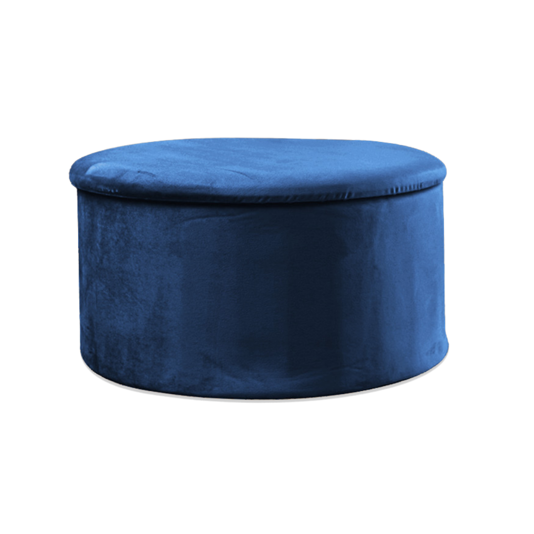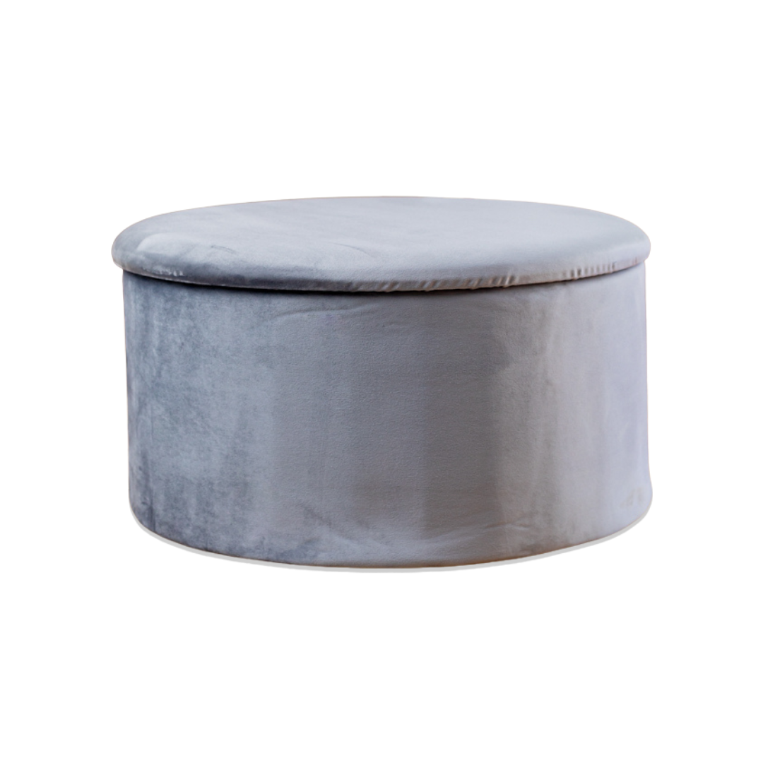 Grey Velvet Circular Storage Ottoman - Footstool