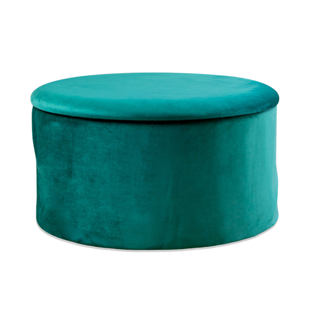 Upgrade your space with the Round Emerald Green Ottoman—stylish and practical. This ottoman provides convenient storage while adding a pop of color, perfect for organizing and enhancing bedrooms and living rooms. Ideal for modern, vibrant interiors.
